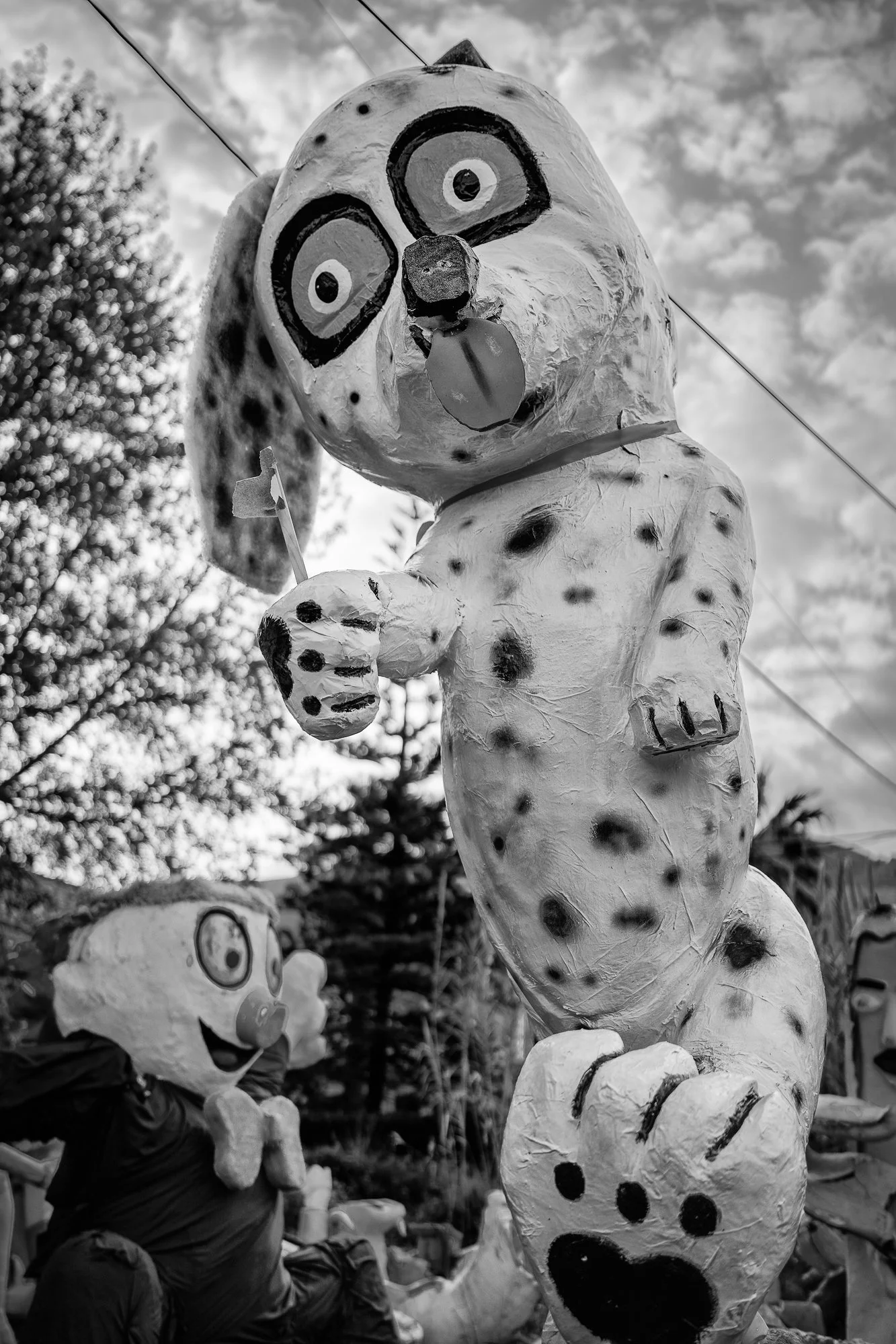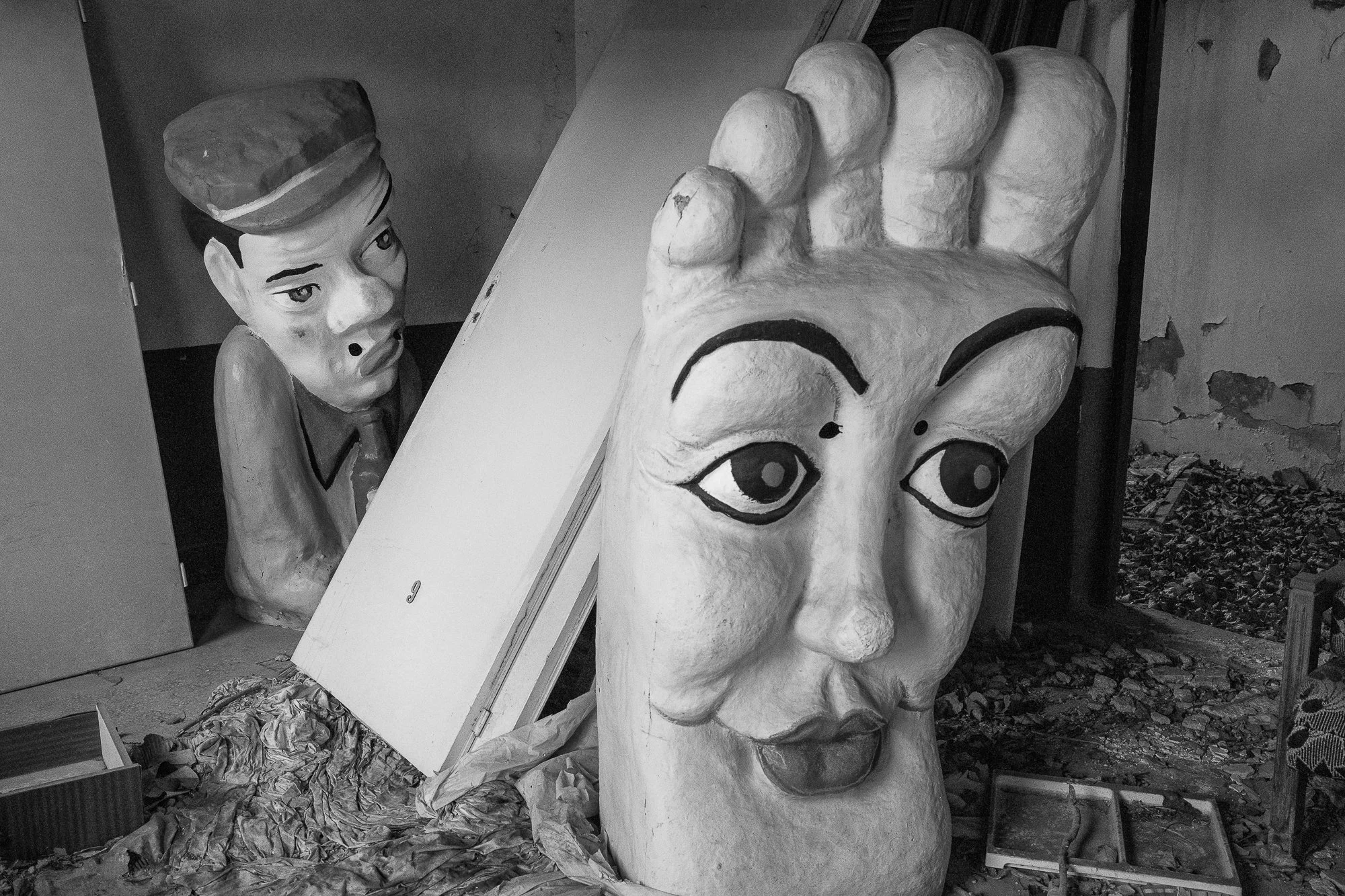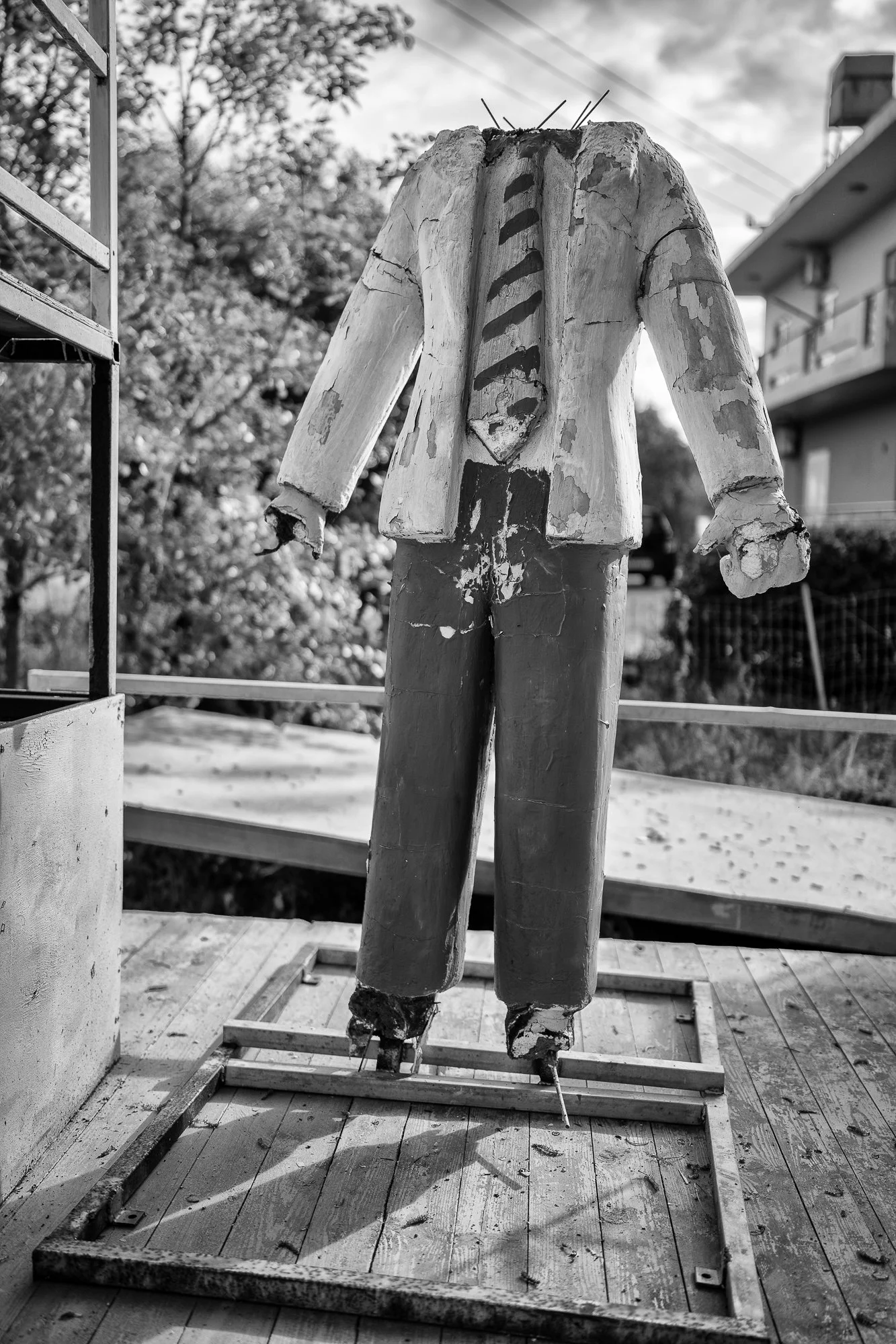 The carnival characters were placed unceremoniously inside a chain-linked fence, on a small lot anchored by an abandoned one-story building. The neglected overgrown parcel, neighbored by a small apartment building on one side and a rumbling industrial street on the other, failed to garner any attention from Cretan truck drivers and commuters grinding through their day. Me, merely a curious traveler with time on his hands, pulled over.